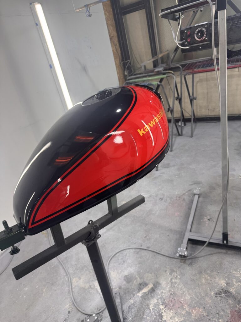 HONDAバリオスのタンクを火の玉カラーに塗装、タンクの形状も板金でZ2使用に。